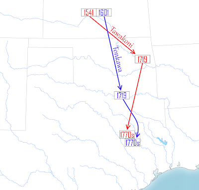 Kaskaskia have been proposed to have come from the north, around western